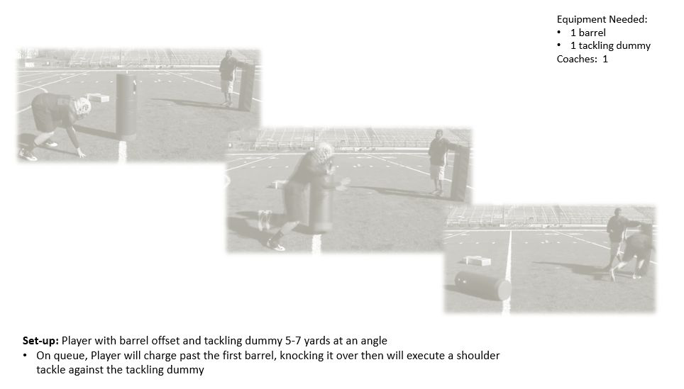 Angle Tackle w/2 Dummies YouTube Video – go to 2:29 Defense DrillsDefense Lineman DrillsFundamentals6-point explosionMan take-off DrillBasic DefenseSwim MoveRip MoveRip Swim Crossover SpinBull Rush DrillQB Sack DrillTacklingFront TackleAngle Tackle DrillAngle Tackle w/2 DummiesScore Tackling Drill v2Block Destruction DrillFootworkSeat Roll DrillFumble RecoveryWave DrillAngle Pursuit