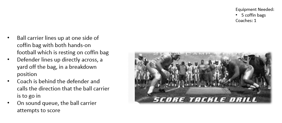 Score Tackling Drill v2 Defense DrillsDefense Lineman DrillsFundamentals6-point explosionMan take-off DrillBasic DefenseSwim MoveRip MoveRip Swim Crossover SpinBull Rush DrillQB Sack DrillTacklingFront TackleAngle Tackle DrillAngle Tackle w/2 DummiesScore Tackling Drill v2Block Destruction DrillFootworkSeat Roll DrillFumble RecoveryWave DrillAngle Pursuit