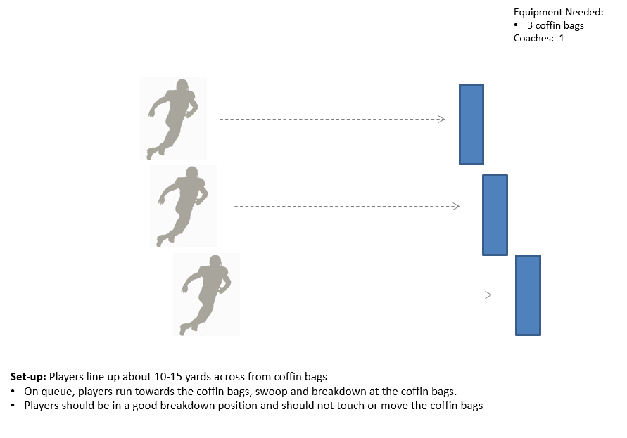 Tackle Swoop/Breakdown – Coffin Bags – DB Defense DrillsDefensive Back DrillsFundamentalsBreakdown PositionSwoop/Breakdown ProgressionSwoop/Breakdown – Coffin BagsBasic DefenseStay with the Receiver DrillDB Zone BreakCushion DrillMirror DrillStalk DrillTacklingOpen Field TacklingCutback Drill45 Degree Tackle DrillGet up TacklingRun & GatherFootwork/ReactionCone Plant Reaction DrillFumble Recovery DrillWave DrillBall Angle DrillAngle Pursuit DrillTip DrillAttack the BallOff the LoopPedal Break 90Super Buzz DrillFlip Your HipsFlip Your Hips 36045 Back-Pedal 45