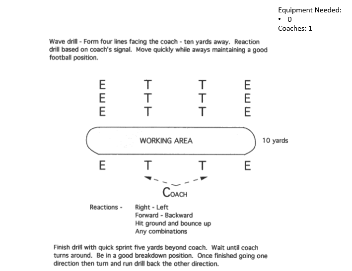 Wave Drill – DB Defense DrillsDefensive Back DrillsFundamentalsBreakdown PositionSwoop/Breakdown ProgressionSwoop/Breakdown – Coffin BagsBasic DefenseStay with the Receiver DrillDB Zone BreakCushion DrillMirror DrillStalk DrillTacklingOpen Field TacklingCutback Drill45 Degree Tackle DrillGet up TacklingRun & GatherFootwork/ReactionCone Plant Reaction DrillFumble Recovery DrillWave DrillBall Angle DrillAngle Pursuit DrillTip DrillAttack the BallOff the LoopPedal Break 90Super Buzz DrillFlip Your HipsFlip Your Hips 36045 Back-Pedal 45