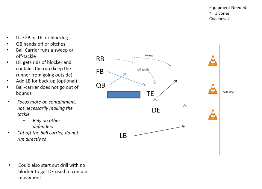 Shed Block and Contain Defense DrillsDefensive End DrillsFundamentalsDefensive End Stance & Start6-point explosion DrillBasic DefenseRip MoveSwim MoveDefensive End Crash DrillSpot, Contain, and PursueTacklingMachine GunShed Block & ContainBlock DestructionAngle PursuitAngle Tackle w/2 Dummies