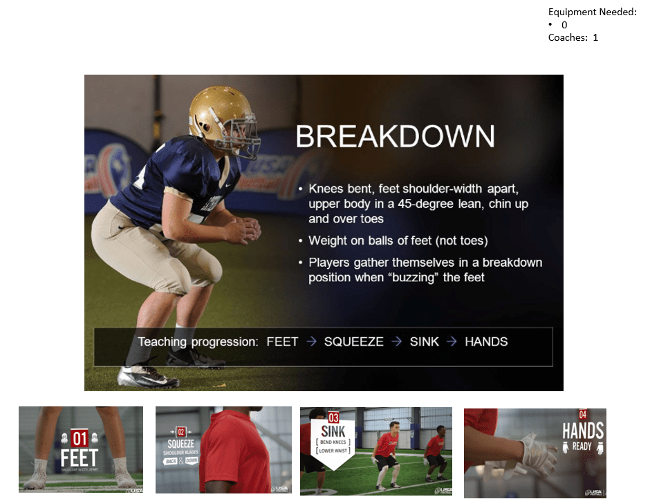 Breakdown Position – LB Defense DrillsLinebacker DrillsFundamentalsBreakdown PositionSwoop/Breakdown ProgressionTacklingShock & ShedScore Tackling Drill v1Score Tackling Drill v2Shimmy DrillBlock DestructionButt Tackle Drill3 Way Tackle DrillFootwork/ReactionForward Run &Roll DrillStep Over &Back DrillBag &cut work DrillFumble RecoveryMatch Hips (Mirror) Drill