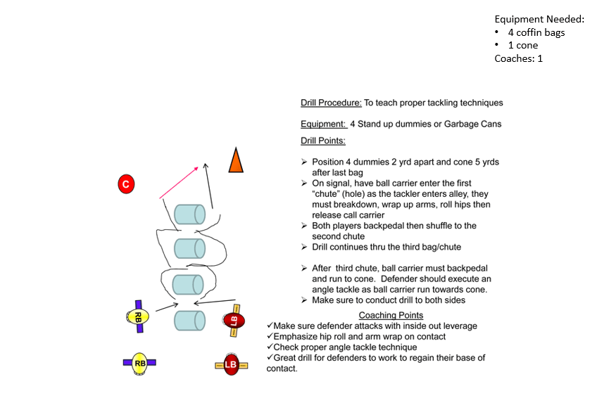 Butt Tackle Drill Defense DrillsLinebacker DrillsFundamentalsBreakdown PositionSwoop/Breakdown ProgressionTacklingShock & ShedScore Tackling Drill v1Score Tackling Drill v2Shimmy DrillBlock DestructionButt Tackle Drill3 Way Tackle DrillFootwork/ReactionForward Run &Roll DrillStep Over &Back DrillBag &cut work DrillFumble RecoveryMatch Hips (Mirror) Drill