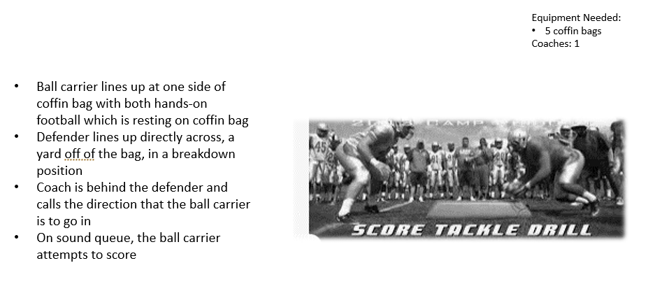 Score Tackling Drill v2 – LB Defense DrillsLinebacker DrillsFundamentalsBreakdown PositionSwoop/Breakdown ProgressionTacklingShock & ShedScore Tackling Drill v1Score Tackling Drill v2Shimmy DrillBlock DestructionButt Tackle Drill3 Way Tackle DrillFootwork/ReactionForward Run &Roll DrillStep Over &Back DrillBag &cut work DrillFumble RecoveryMatch Hips (Mirror) Drill
