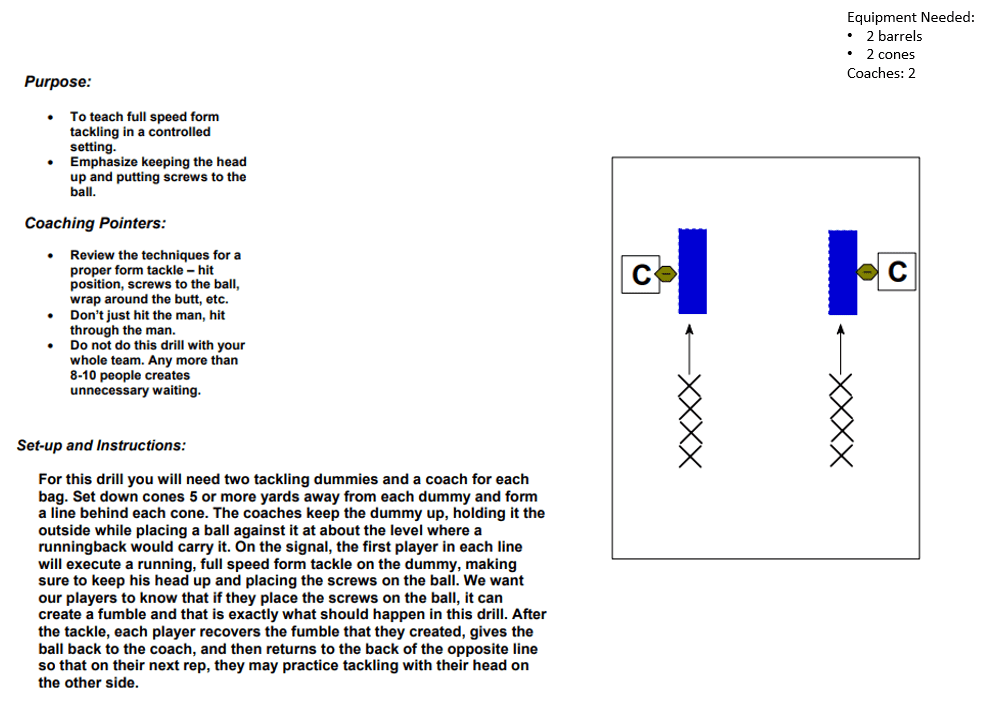 Popsicle Tackling Defense DrillsTackling DrillsFundamentalsBreakdown PositionNear FootSwoopShootUppercutsUppercuts Progression 1Uppercuts Progression 2LeverageNear Foot Near ShoulderNear Hip DrillRun & Gather2 Man Drill2 Man RabbitForm TacklingPop up TackleTight Angle TackleAngle Tackle w/BagSprint Tackle w/BagPopsicle TacklingGet up TacklingSplatter TacklingThigh & Drive/RollKneeling Drive w/BagKneeling Drive w/PlayerKneeling Drive w/padsStanding Drive w/bagStanding Drive w/playerStanding Drive w/padsTwo Step DriveRunning Drive