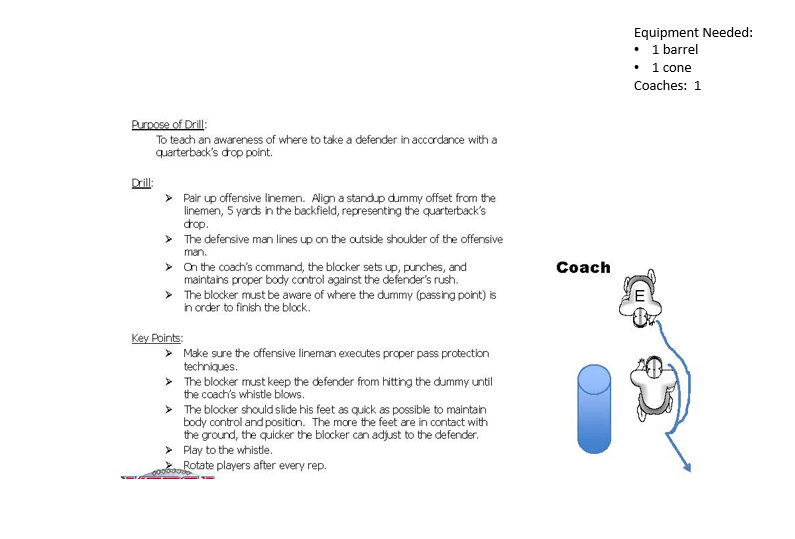 Finish Drill Offense DrillsOffense Lineman DrillsFundamentalsStance DrillStanding Broad JumpDuck WalkBird DogLow Level Pad DrillBasic BlockingRIP/LIZ Line BlockingBarrel Drill – Fit & FinishBoard DrillBlocking BattleBlock the AlleyLine to BackerRun BlockingDown Blocking DrillReach DrillDrive BlockingPass BlockingContinuous SetContinuous Set – Multiple SetsSet and PunchFinish DrillCenterUnder Center Snaps – LinemanDirect Snaps – LinemanTight-EndReach Block & Catch