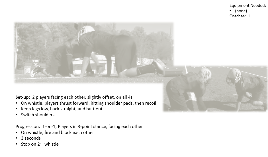 Low Level Pad Drill YouTube Video – go to 1:15 Offense DrillsOffense Lineman DrillsFundamentalsStance DrillStanding Broad JumpDuck WalkBird DogLow Level Pad DrillBasic BlockingRIP/LIZ Line BlockingBarrel Drill – Fit & FinishBoard DrillBlocking BattleBlock the AlleyLine to BackerRun BlockingDown Blocking DrillReach DrillDrive BlockingPass BlockingContinuous SetContinuous Set – Multiple SetsSet and PunchFinish DrillCenterUnder Center Snaps – LinemanDirect Snaps – LinemanTight-EndReach Block & Catch