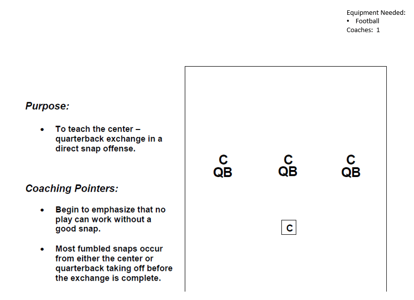 Under Center Snaps – Lineman Offense DrillsOffense Lineman DrillsFundamentalsStance DrillStanding Broad JumpDuck WalkBird DogLow Level Pad DrillBasic BlockingRIP/LIZ Line BlockingBarrel Drill – Fit & FinishBoard DrillBlocking BattleBlock the AlleyLine to BackerRun BlockingDown Blocking DrillReach DrillDrive BlockingPass BlockingContinuous SetContinuous Set – Multiple SetsSet and PunchFinish DrillCenterUnder Center Snaps – LinemanDirect Snaps – LinemanTight-EndReach Block & Catch