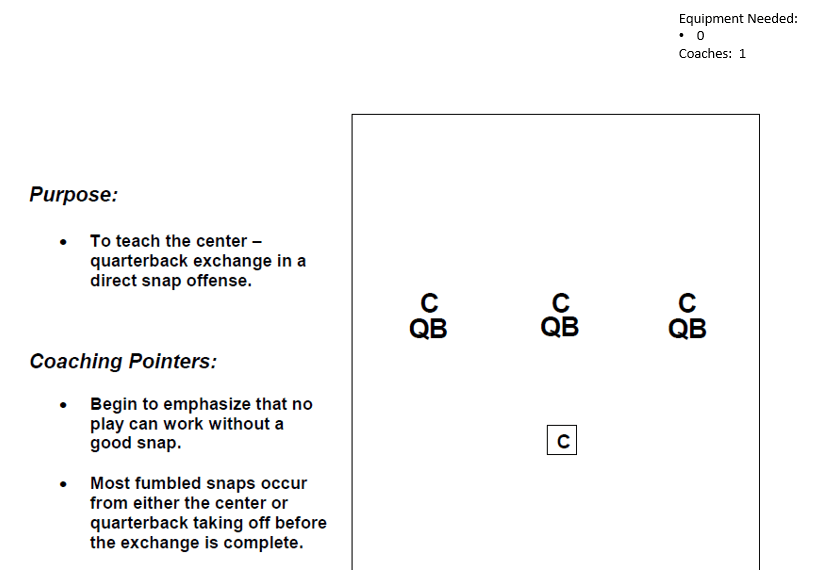 Under Center Snaps – QB Offense DrillsDrillsUnder Center SnapsDirect SnapsThrow through the Tire DrillSet-up DrillPassing Routes