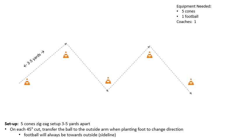 45 Degree Cone Cut w/Ball Transfer Offense DrillsRunning Back DrillsFundamentalsRunning Back HandoffRunning Back Hand Off DrillEnd Run (Pitch) DrillJet Sweep DrillBall WrestlingFootworkJump CutsPopcorn Agility DrillRB Figure 8Basic RunningStiff Arm DrillBag Read & Cut DrillBlast DrillGauntlet DrillHit the Hole45 Degree Cone Cut & TransferRB Run BlockingCut Block Drill – Phase 1Cut Block Drill – Phase 2Close Contact & MaintainOpen BlockingStrike / Extend / FinishRB Pass BlockingSimple Punch DrillTwo Pass Protection Set
