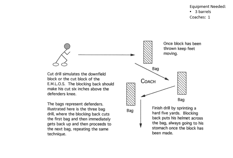Cut Block Drill – Phase 2 Offense DrillsRunning Back DrillsFundamentalsRunning Back HandoffRunning Back Hand Off DrillEnd Run (Pitch) DrillJet Sweep DrillBall WrestlingFootworkJump CutsPopcorn Agility DrillRB Figure 8Basic RunningStiff Arm DrillBag Read & Cut DrillBlast DrillGauntlet DrillHit the Hole45 Degree Cone Cut & TransferRB Run BlockingCut Block Drill – Phase 1Cut Block Drill – Phase 2Close Contact & MaintainOpen BlockingStrike / Extend / FinishRB Pass BlockingSimple Punch DrillTwo Pass Protection Set