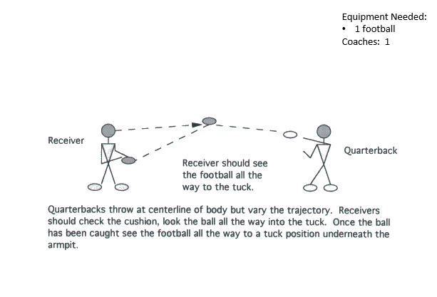 Catch and Tuck Drill Offense DrillsWide Receiver DrillsFundamentalsPass and Catch (stationary) DrillPassing Routes – WRCatch and Tuck DrillThrow at Shoulders DrillFootworkWide Receiver Figure 8 DrillLateral Agility and Route Quick Feet, Breakdown, & CatchReceiver Matrix FootworkFootwork Brake and ShakeAdvanced Footwork and RouteHesi (Hesitate) ShakeFootwork Obstacle CourseBasic ReceiverTip DrillClockwork DrillHide & SeekPush Up + Catch DrillPlayer Distraction DrillBag CatchStep Over Bag Drill & CatchBreakdown-Plant-DriveStay with the Receiver DrillWR Pass BlockingClose Contact CoverageSecondary ContactStalk DrillStalk Drill Progression