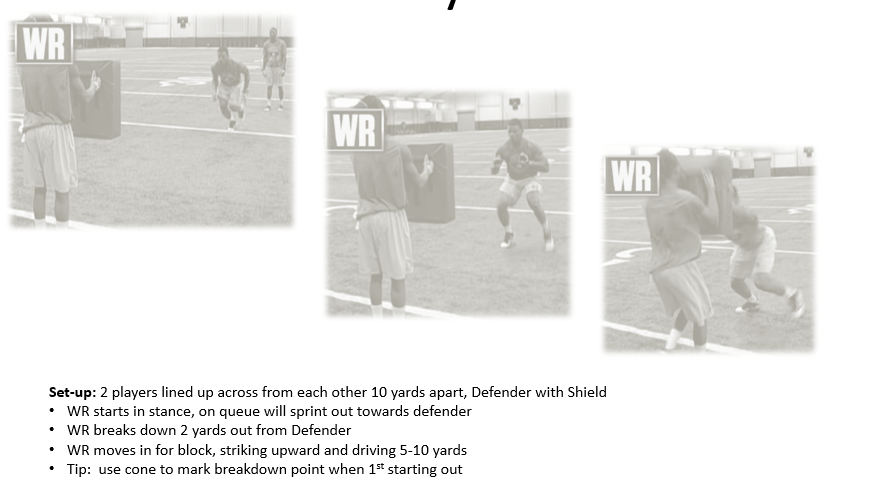 Secondary Contact YouTube Video – go to 1:10 Offense DrillsWide Receiver DrillsFundamentalsPass and Catch (stationary) DrillPassing Routes – WRCatch and Tuck DrillThrow at Shoulders DrillFootworkWide Receiver Figure 8 DrillLateral Agility and Route Quick Feet, Breakdown, & CatchReceiver Matrix FootworkFootwork Brake and ShakeAdvanced Footwork and RouteHesi (Hesitate) ShakeFootwork Obstacle CourseBasic ReceiverTip DrillClockwork DrillHide & SeekPush Up + Catch DrillPlayer Distraction DrillBag CatchStep Over Bag Drill & CatchBreakdown-Plant-DriveStay with the Receiver DrillWR Pass BlockingClose Contact CoverageSecondary ContactStalk DrillStalk Drill Progression