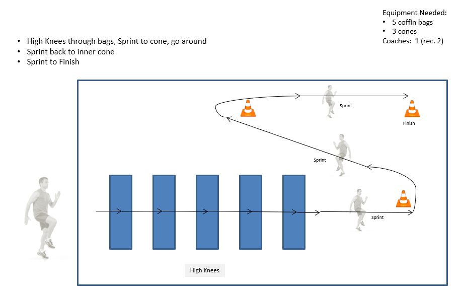 High-knee pursuit drill Speed & Agility DrillsBag DrillsLateralLateral Step OverLateral Step over w/BallLateral ½ Way SwitchLateral up RedirectStagger quick lateralHigh KneeHigh KneesHigh Knee pursuitHigh Knee lateral pursuitPursuit – High Knee LateralOtherChange of DirectionShuffleOpen Field Cut